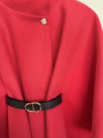 Capa elegante roja con tela de abrigo y cinturón. Abarca desde la XS hasta la XL.